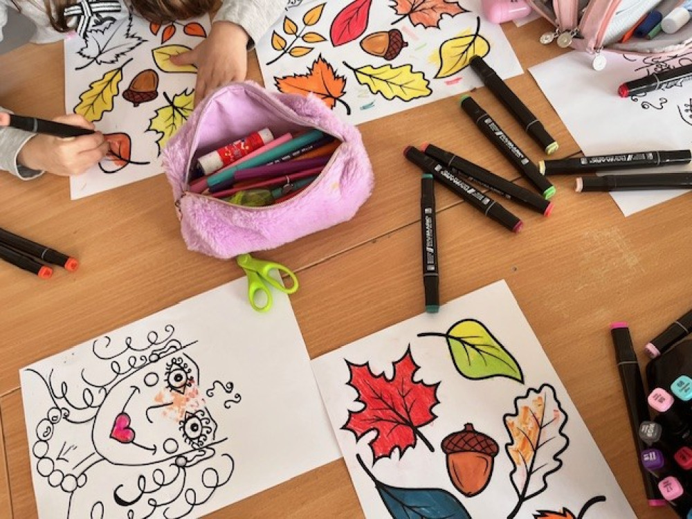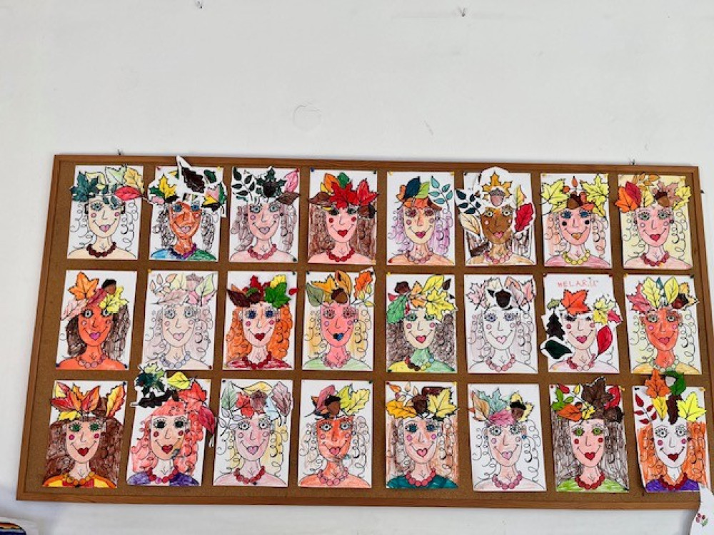 W słoneczny dzień w świetlicy szkolnej dzieci wykonały kolorową pracę plastyczną. Piękna Pani jesień ozdobiła nasze tablice w sali.
