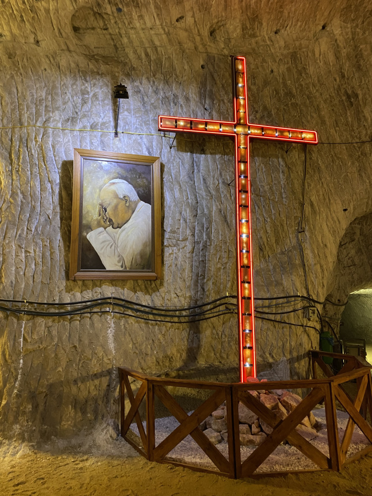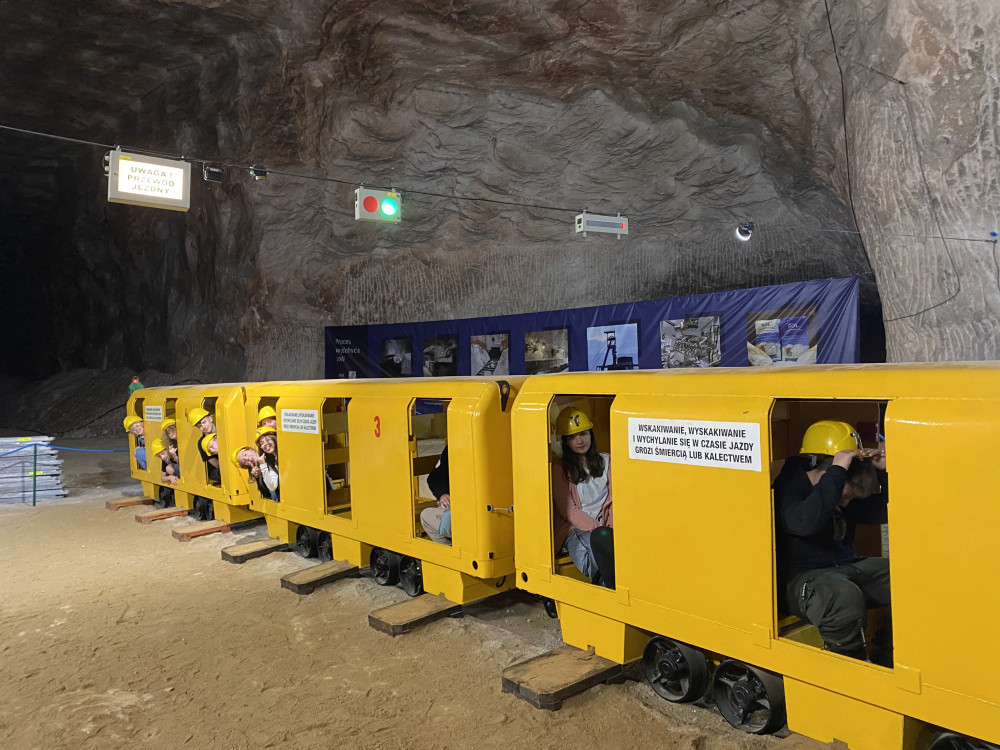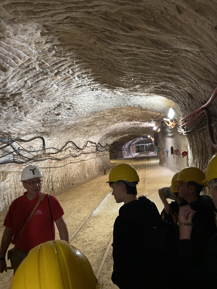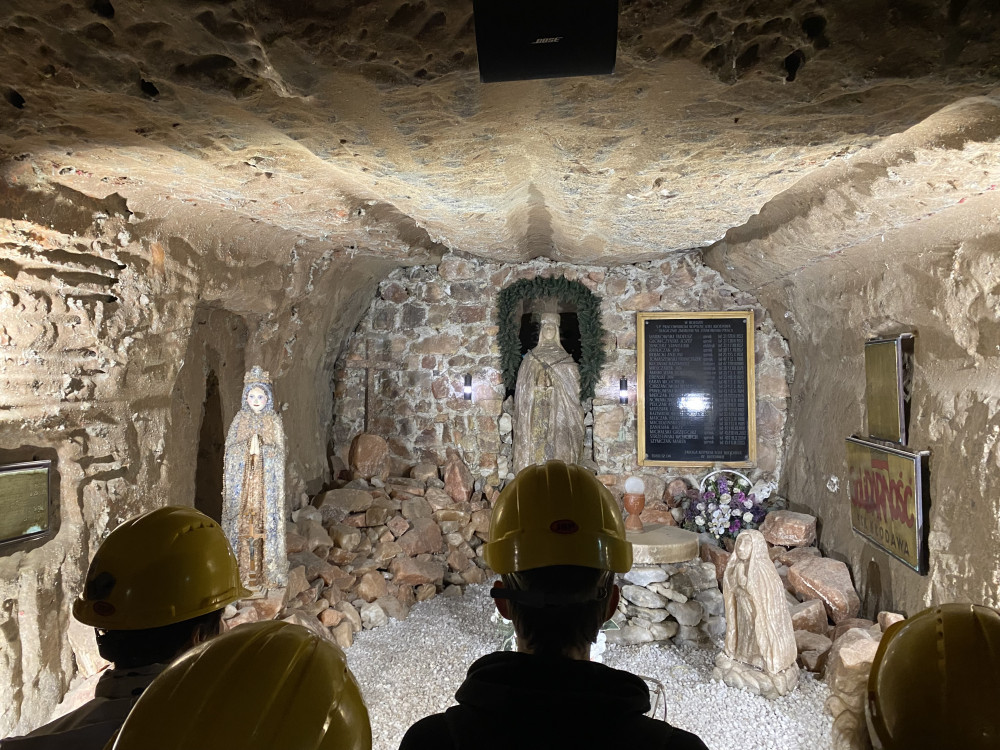 Zjazd windą to początek wizyty w podziemnej trasie turystycznej, której zwiedzanie trwało ponad dwie godziny. Zobaczyliśmy korytarze kopalni, komory solne, ekspozycję maszyn górniczych, kaplicę św. Kingi, przeżyliśmy symulację wybuchów górniczych.