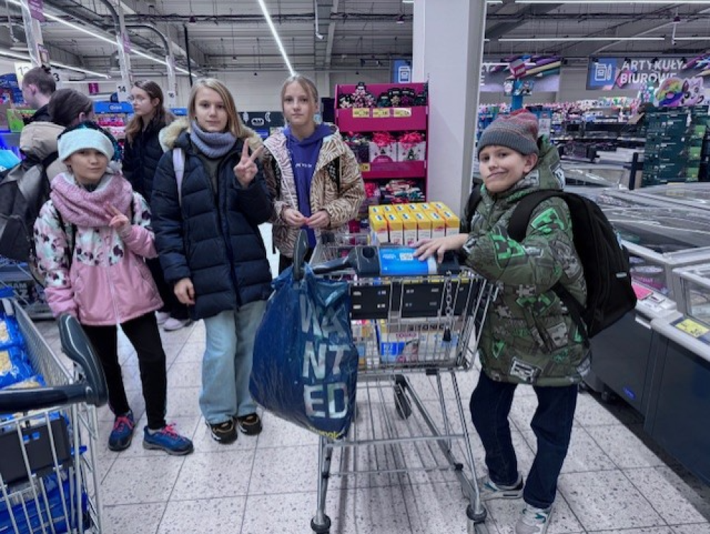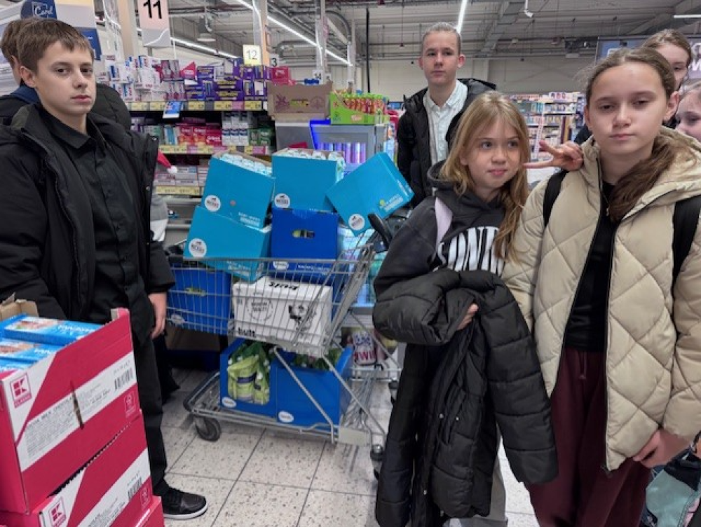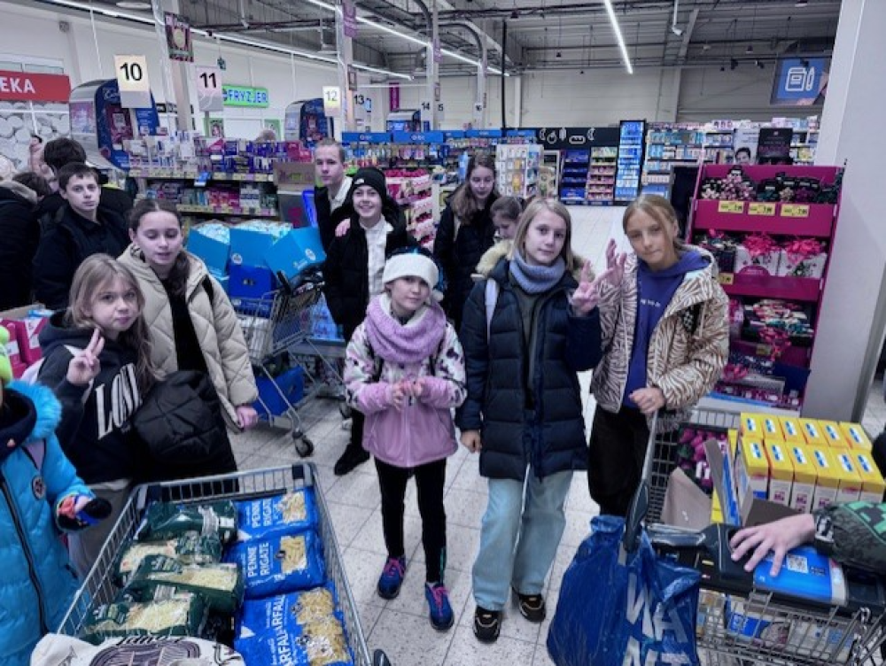 Jak co roku, w okresie adwentowym, uczniowie naszej szkoły wcielili się w rolę świętych Mikołajów, aby nieść pomoc tym, którzy na co dzień zmagają się z nieuleczalną chorobą i zdecydowanie nie mają ani siły, ani „głowy”, ani pieniędzy, aby myśleć o Świętach. Dlatego my pomyśleliśmy za nich i zrobiliśmy ogroooomne przedświąteczne zakupy, które następnie dostarczyliśmy wprost do siedziby Hospicjum Domowego Ojców Marianów przy ulicy Wileńskiej w ramach dorocznej akcji „Paczka pełna dobroci”. Zakupy były obfite, bo i budżet mieliśmy zacny: 3.700 zł żywej gotówki! Tak imponującą kwotę udało się zebrać dzięki ofiarności rodziców i uczniów klas: 5b, 1s, 7a, 4a oraz prawie wszystkich uczestników tegorocznych warsztatów Euroweek. Po raz kolejny przypomnieliśmy sobie ile radości i satysfakcji daje pomaganie i dobroczynienie. Jest to zresztą taki nasz niegroźny, czy wręcz nawet bardzo pożyteczny, nałóg…