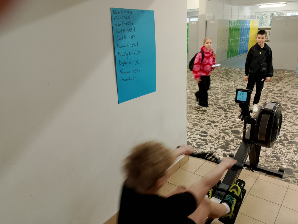 W piątek, 13 lutego, w naszej szkole odbyły się emocjonujące zawody w ergometrze wioślarskim, w których wzięło udział 10 uczniów klas 7 i 8, na dystansie 1000 m. Impreza ta miała na celu wyłonienie najsprawniejszych młodych wioślarzy oraz promowanie aktywnego stylu życia i ducha sportowej rywalizacji.
